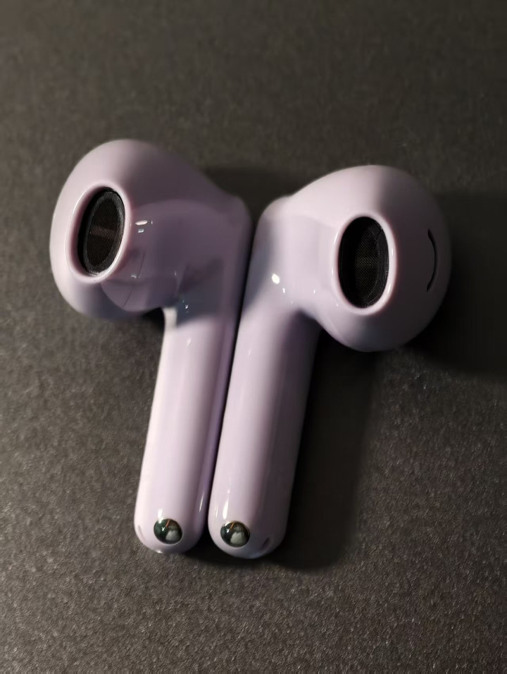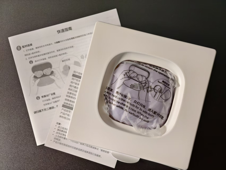 撕开塑封的纯白包装盒,方形圆角的充电盒被固定在衬垫中,淡紫色的机身透着清新感。充电盒仅重 33g,表面细腻不易留指纹,磁吸开盖时的 “咔嗒” 声力度适中,随身携带毫无负担。盒内标配耳机一对、充电盒及说明书,需注意不含充电线,但可通用手机 Type-C 线充电。